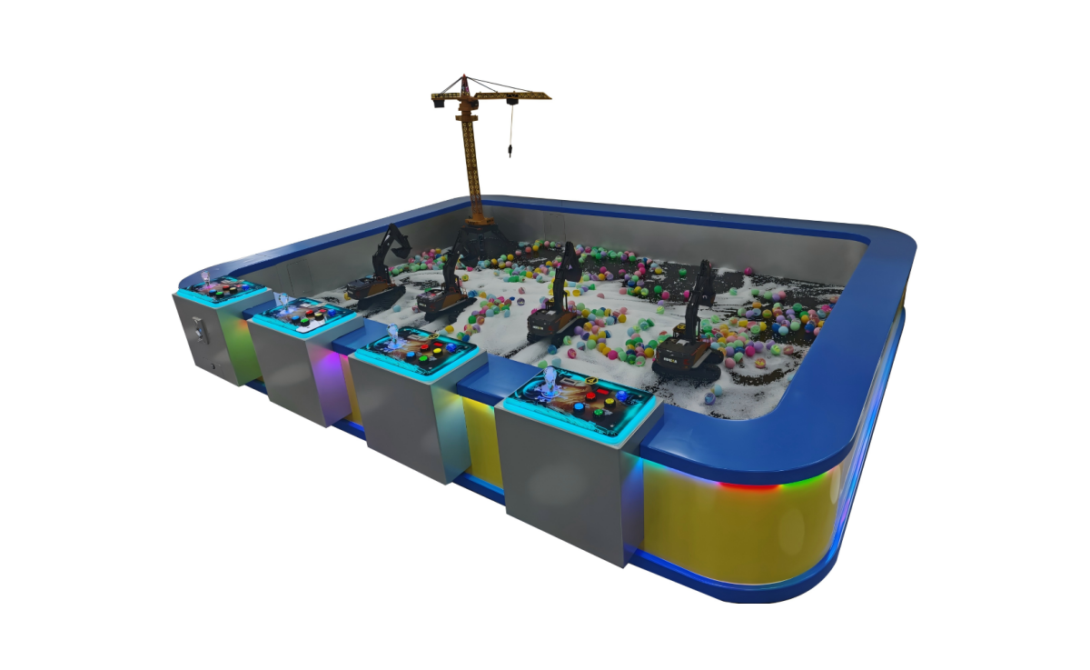Fiberglass sand pool—sturdy, durable, and easy to clean; multiple operator consoles let kids sit and control excavators to unearth treasures in real time; configurable 1- or 2-minute play sessions with extended standby; It's an immersive, family-friendly digging adventure. High ROI. Very appealing.