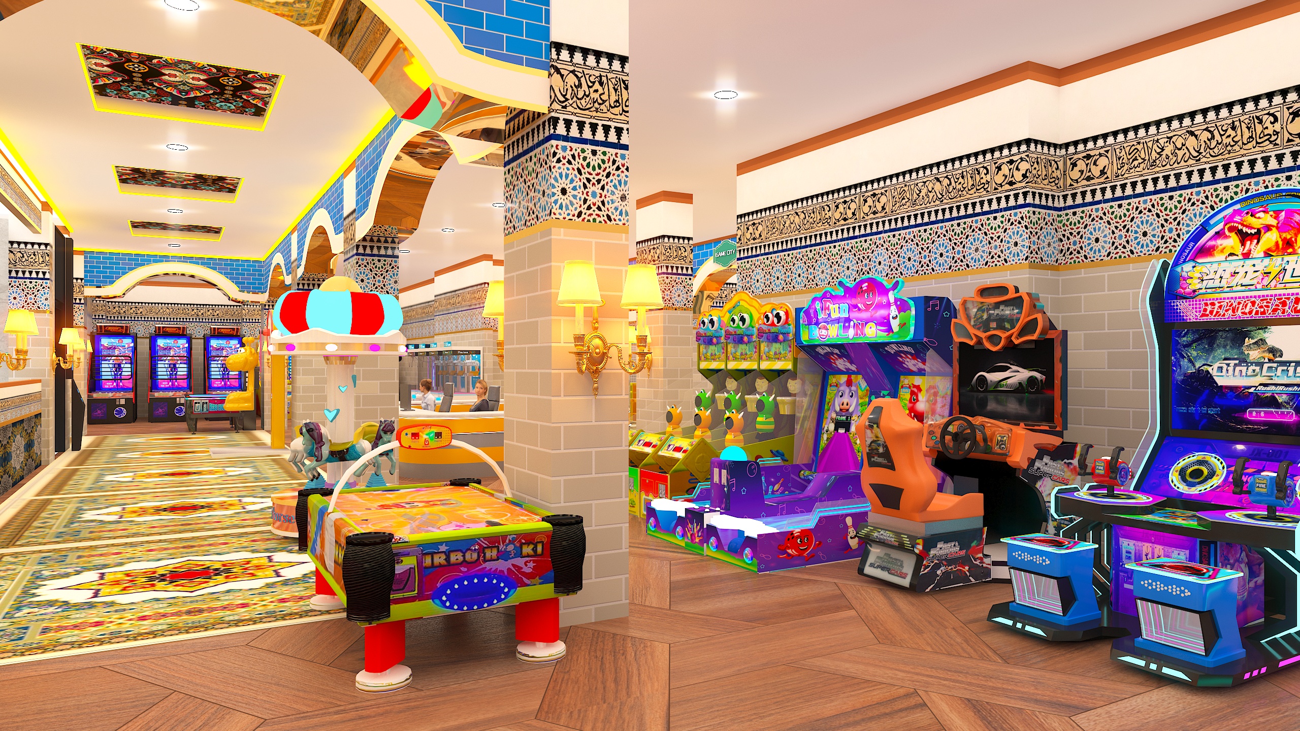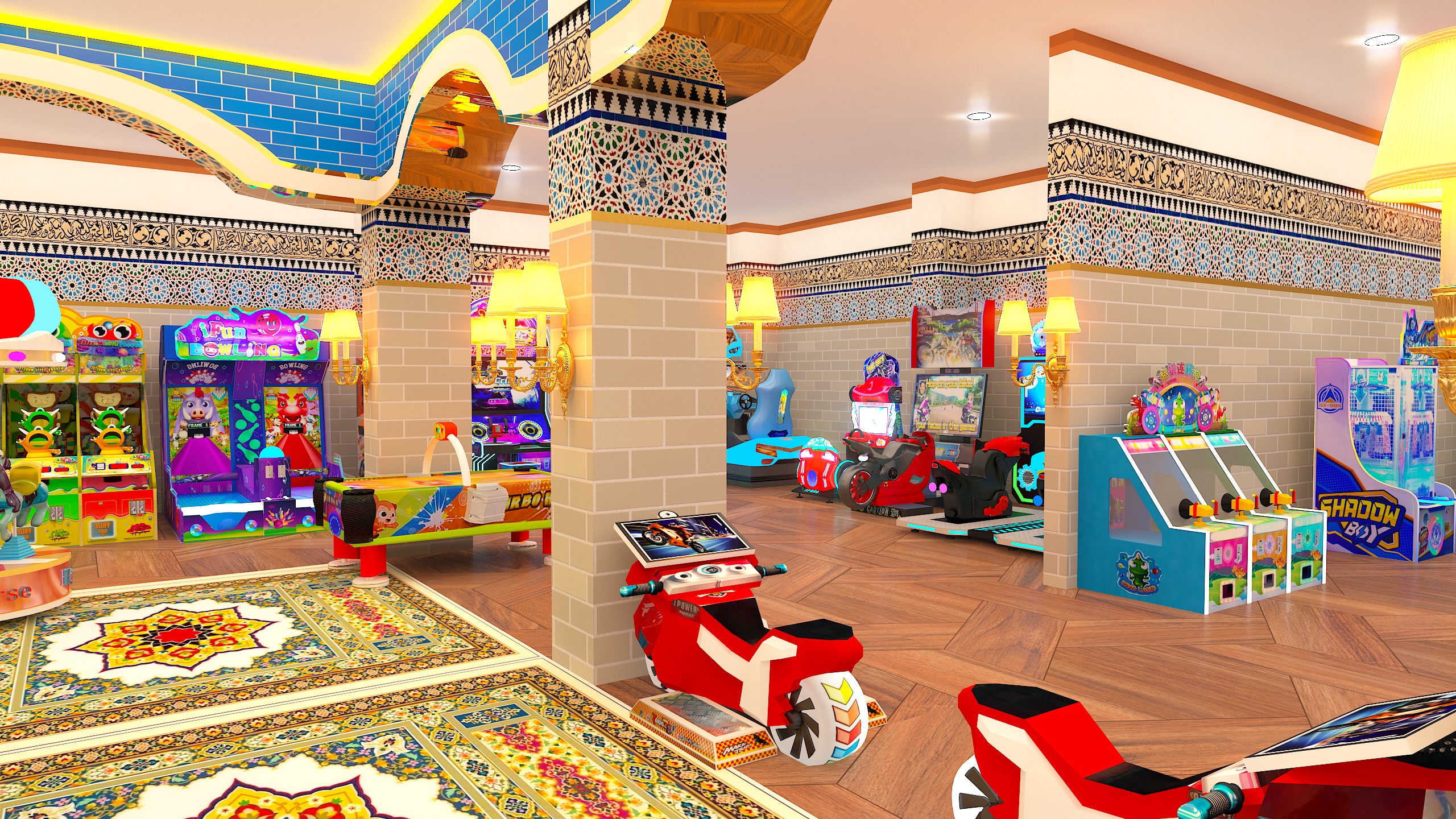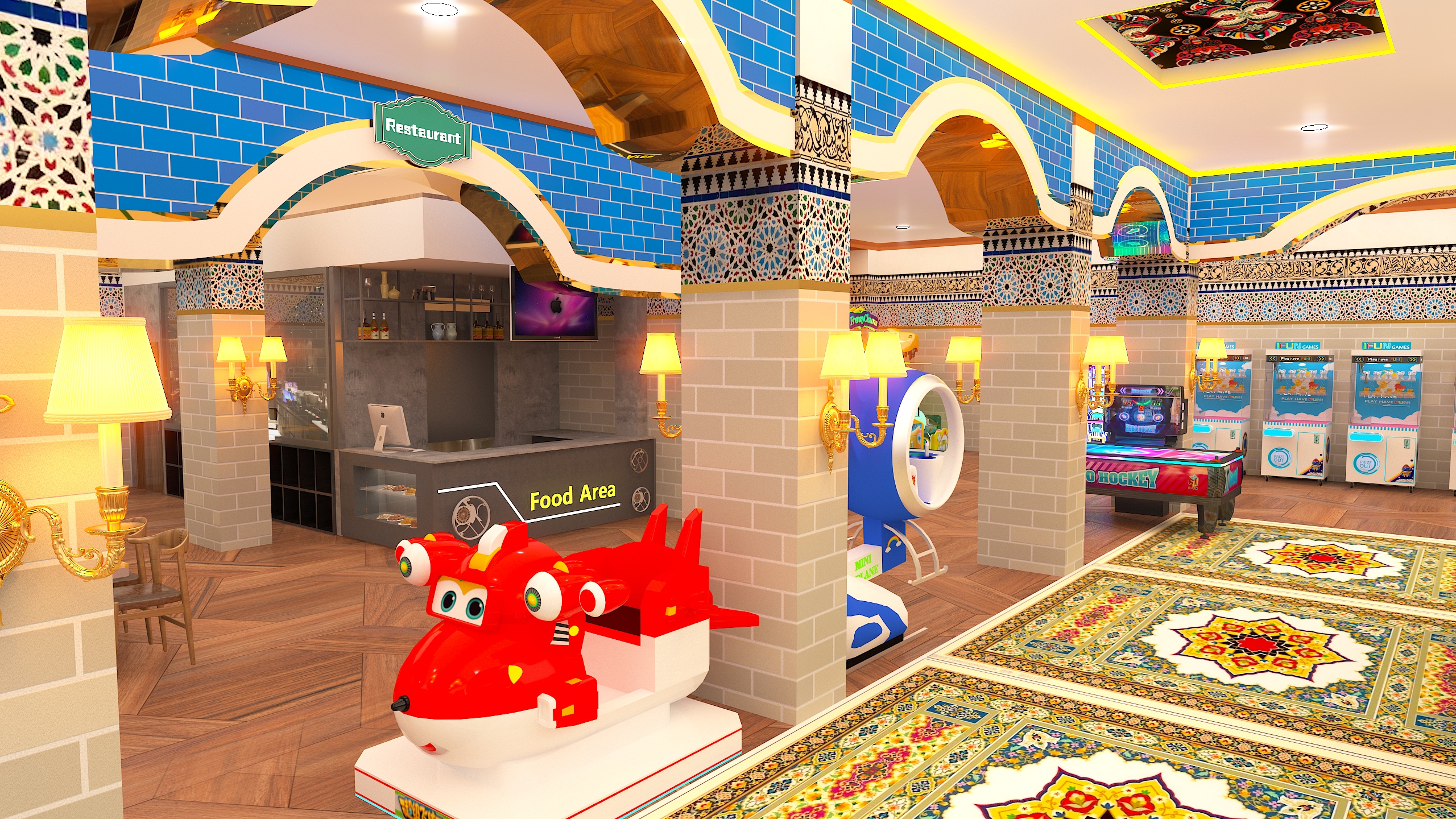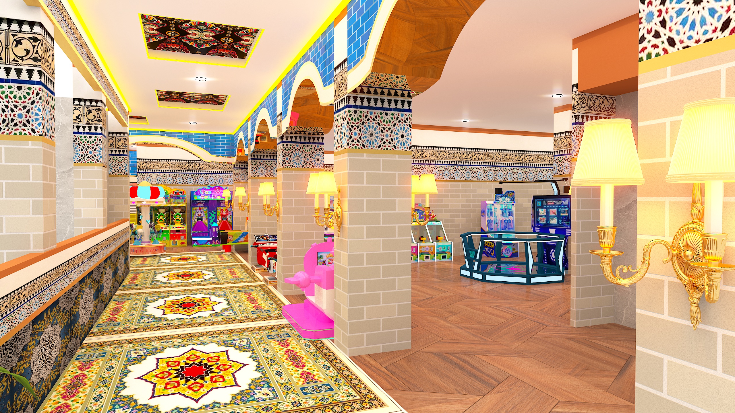 Layout uses “cultural flow” – themed arches guide movement, no dead ends. Decor doubles as branding: unique Arabian style stands out in malls.