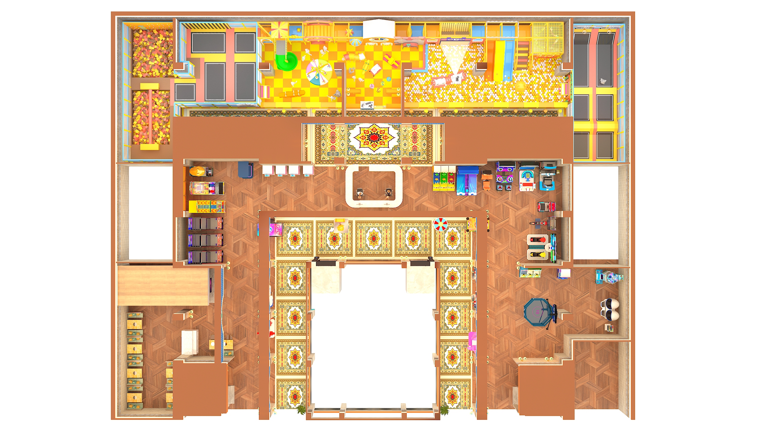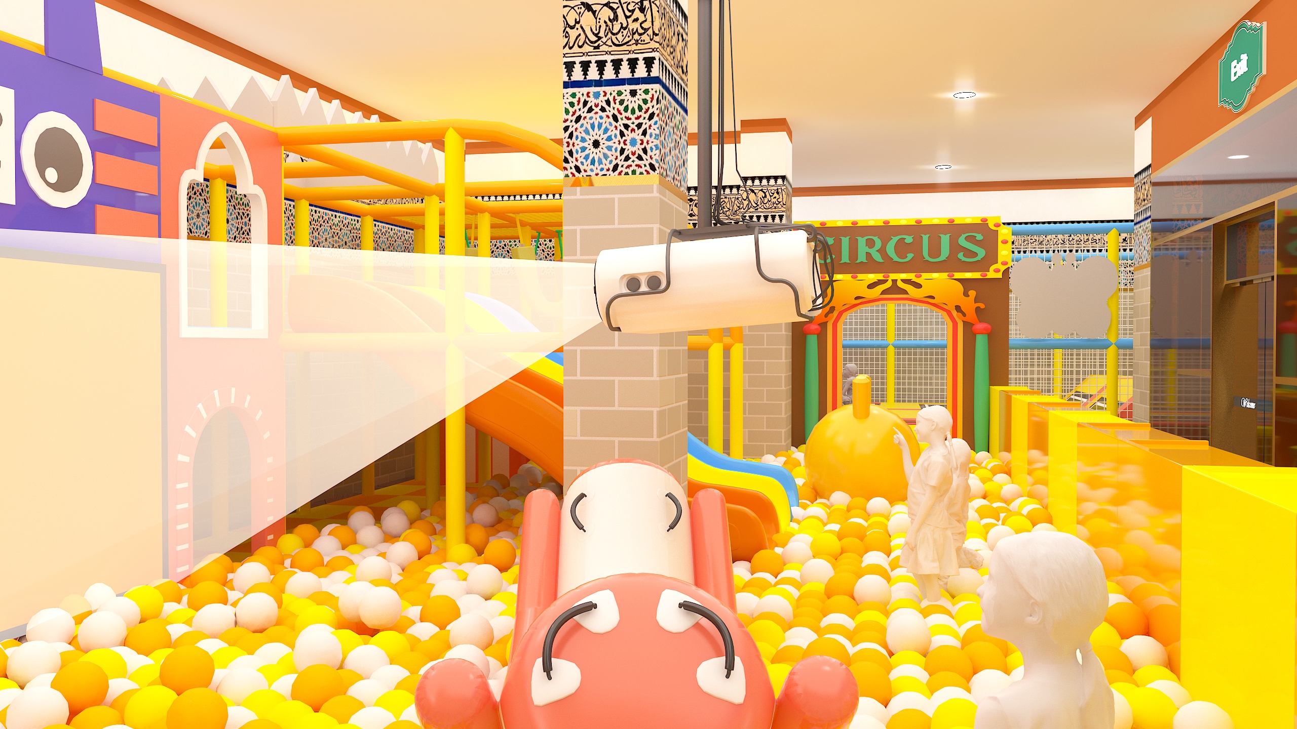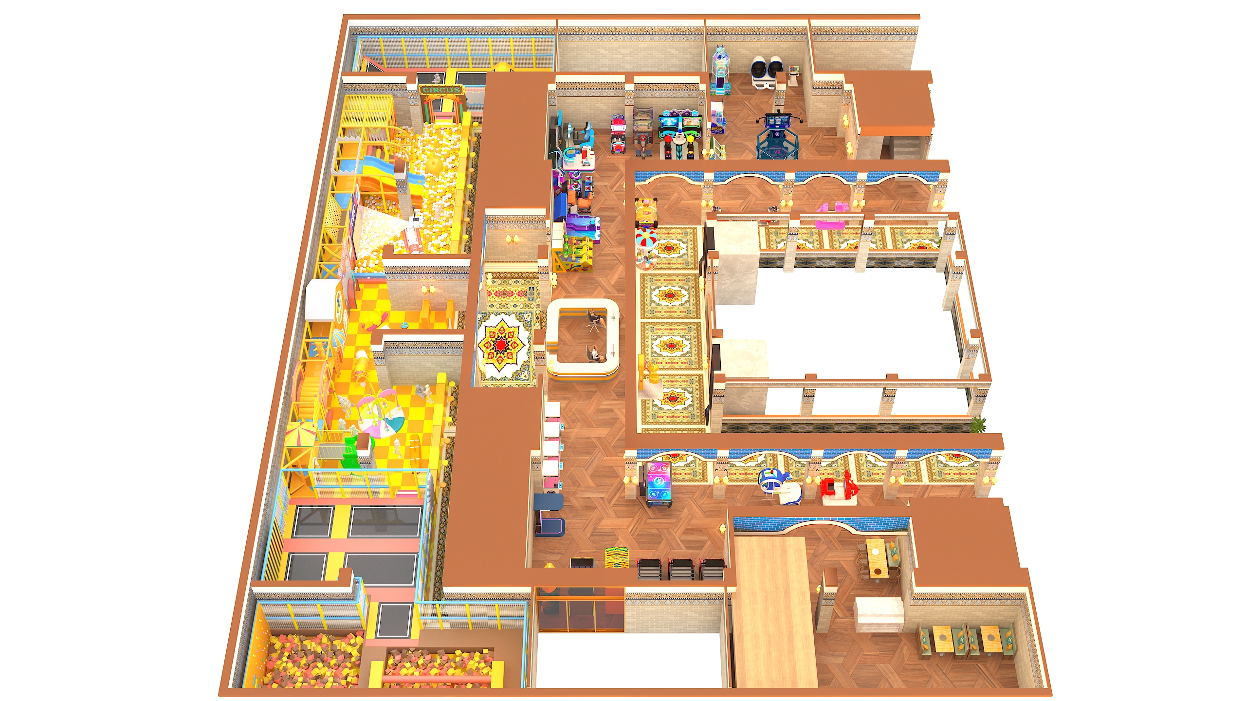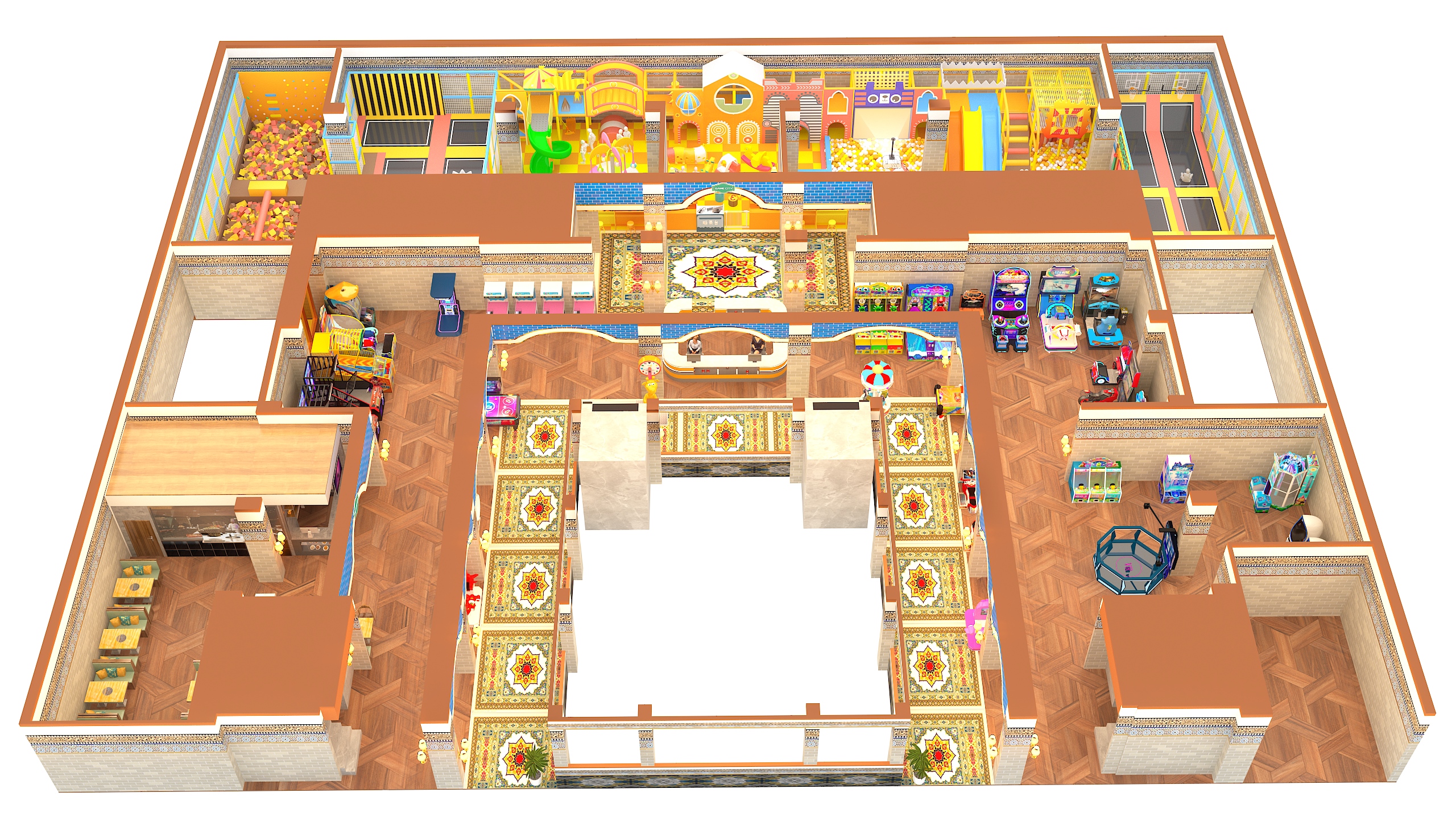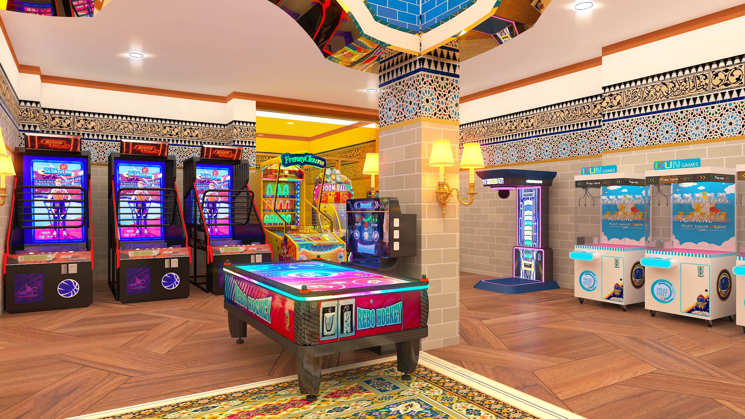 Layout uses “cultural flow” – themed arches guide movement, no dead ends. Decor doubles as branding: unique Arabian style stands out in malls.