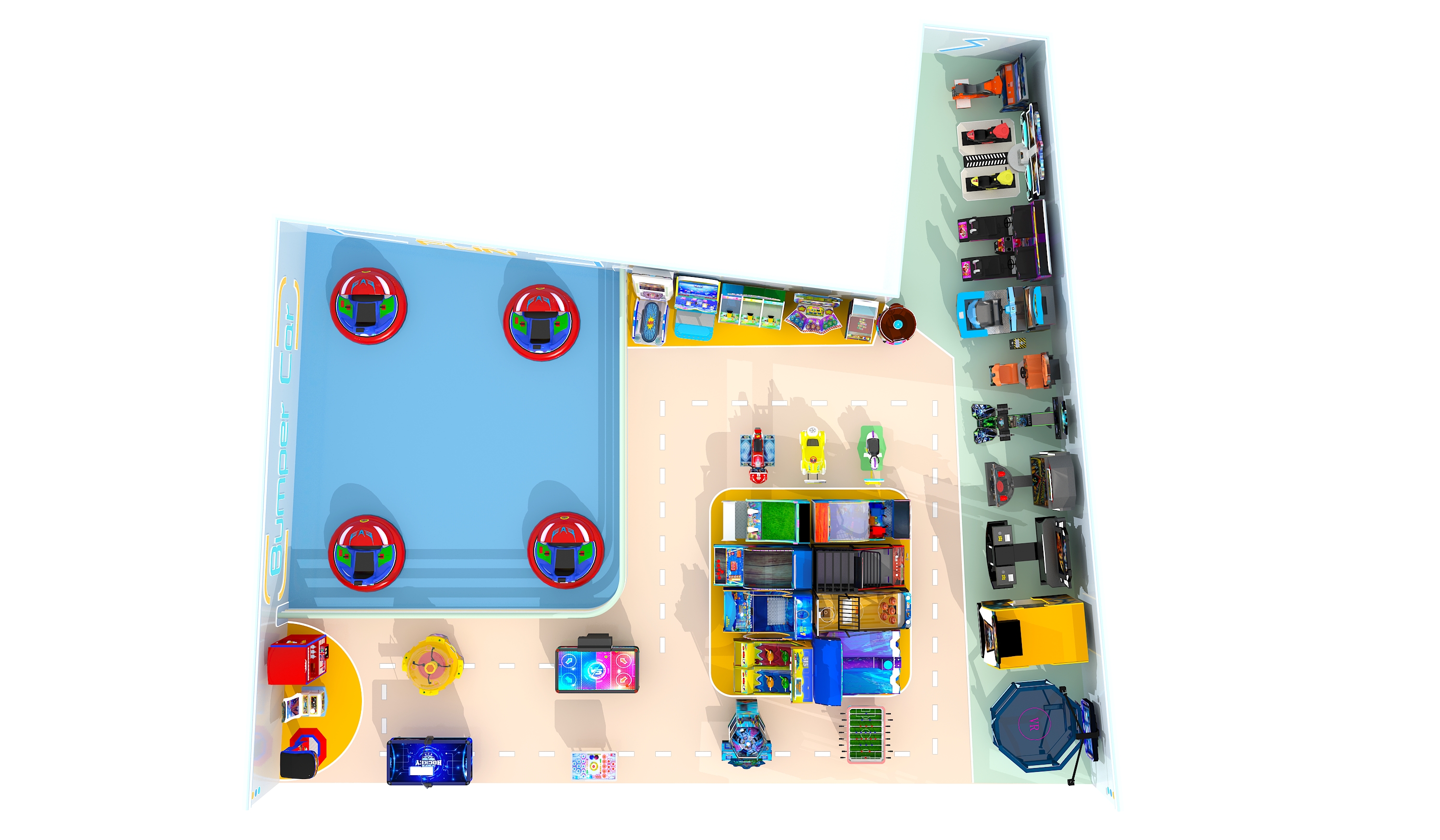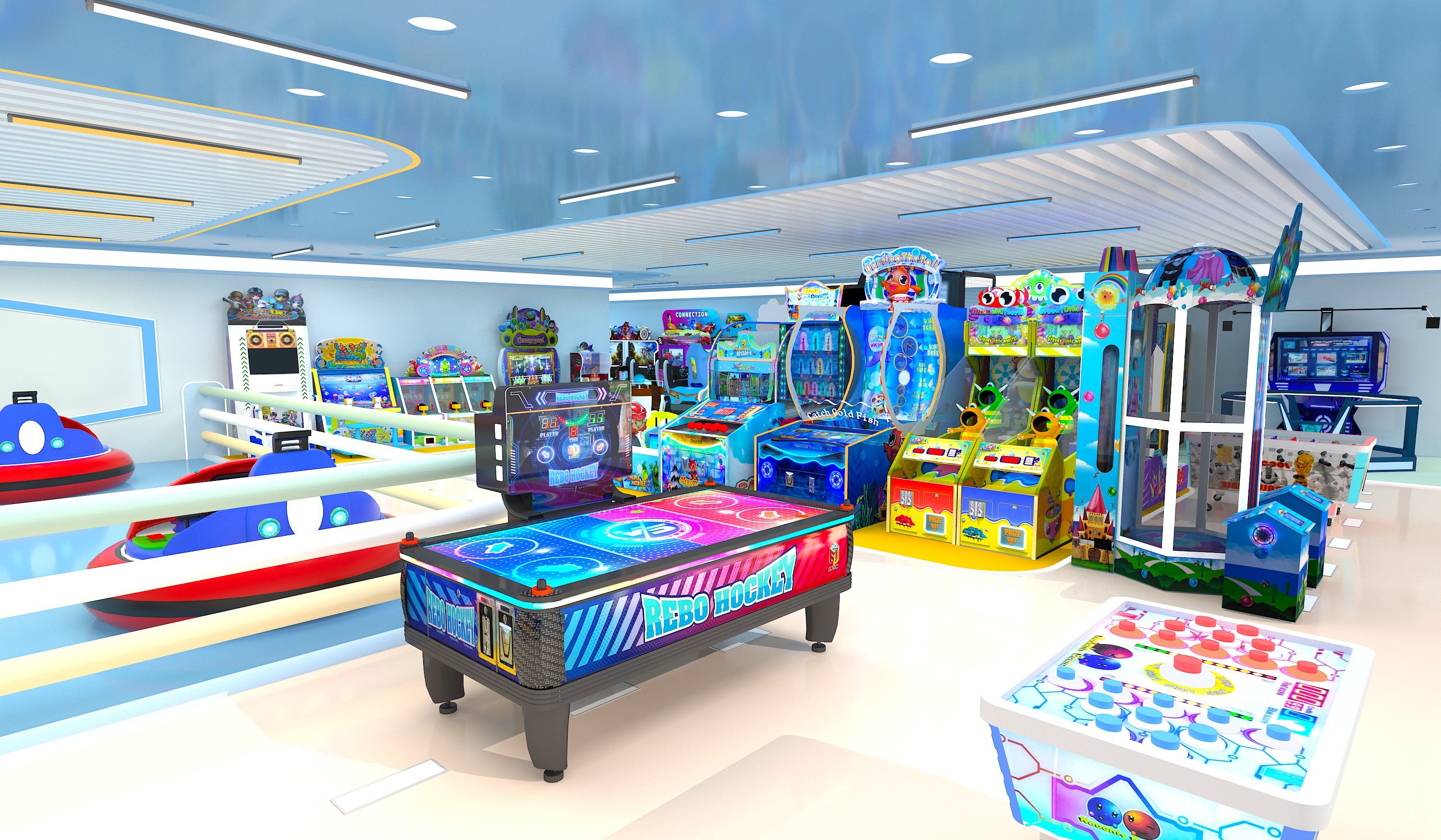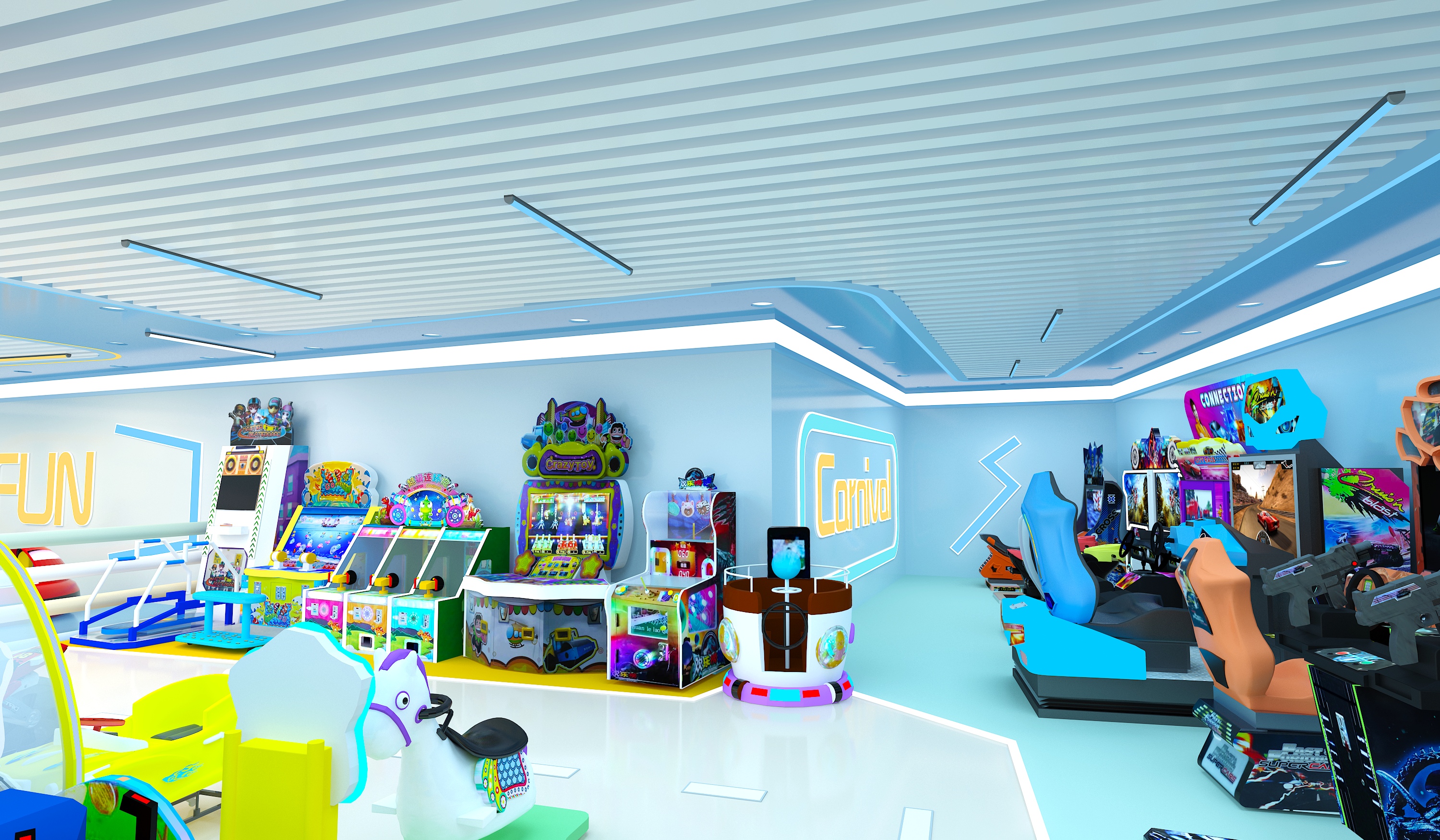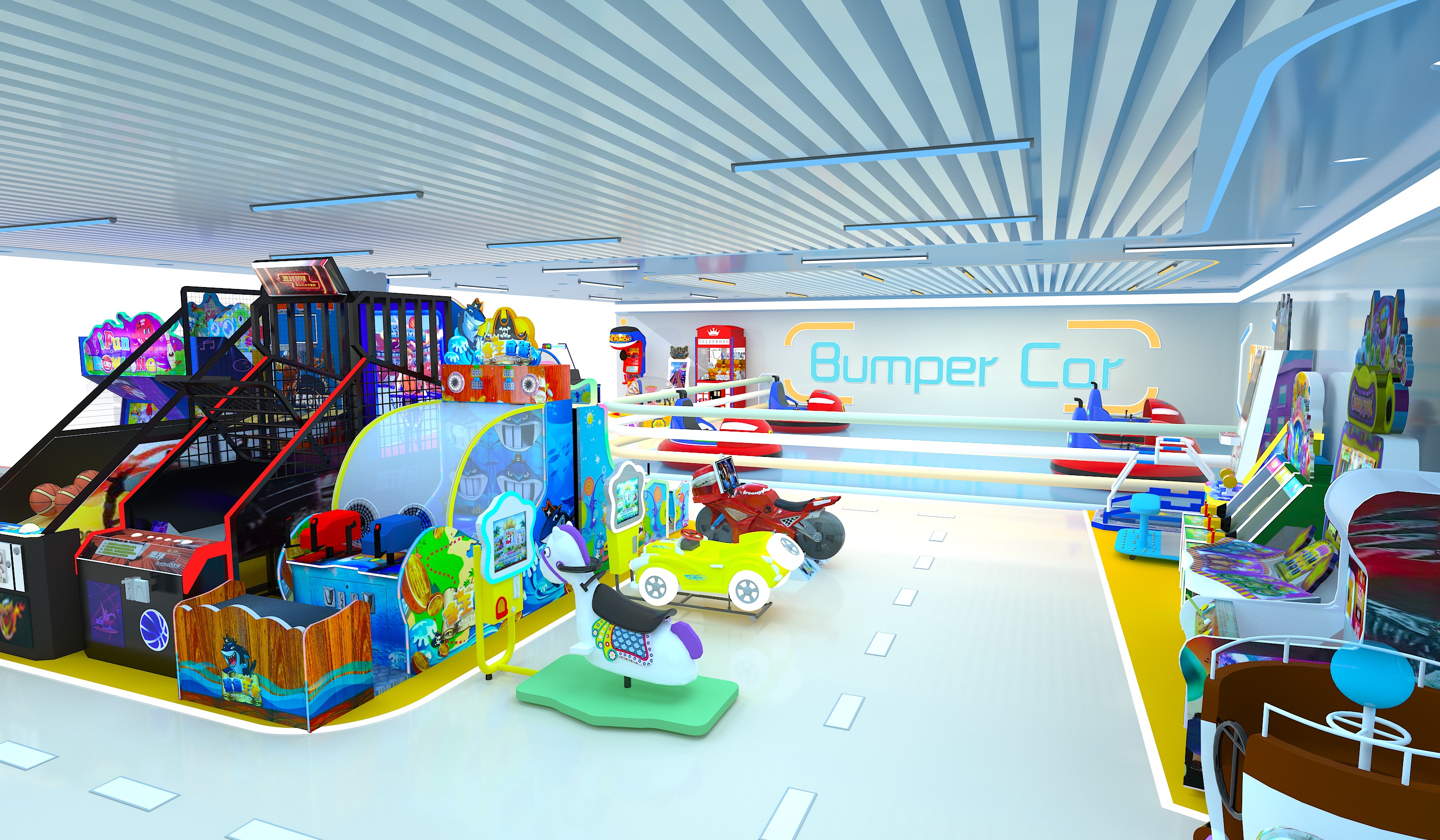 Happy Baby Hub is a fun wonderland for little ones. In terms of layout, it has a bumper car joy zone, a cluster area for small arcade machines, and an interactive corner for younger kids, with smooth circulation for easy exploration. The style features macaron color schemes. The equipment looks cute, from rockers to mild - puzzle arcades. All are child-height- friendly and easy-to-operate.