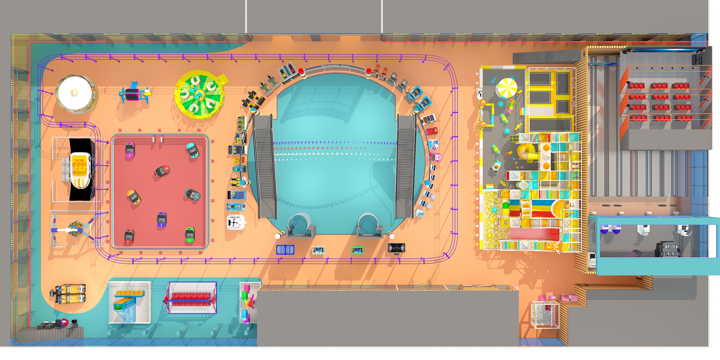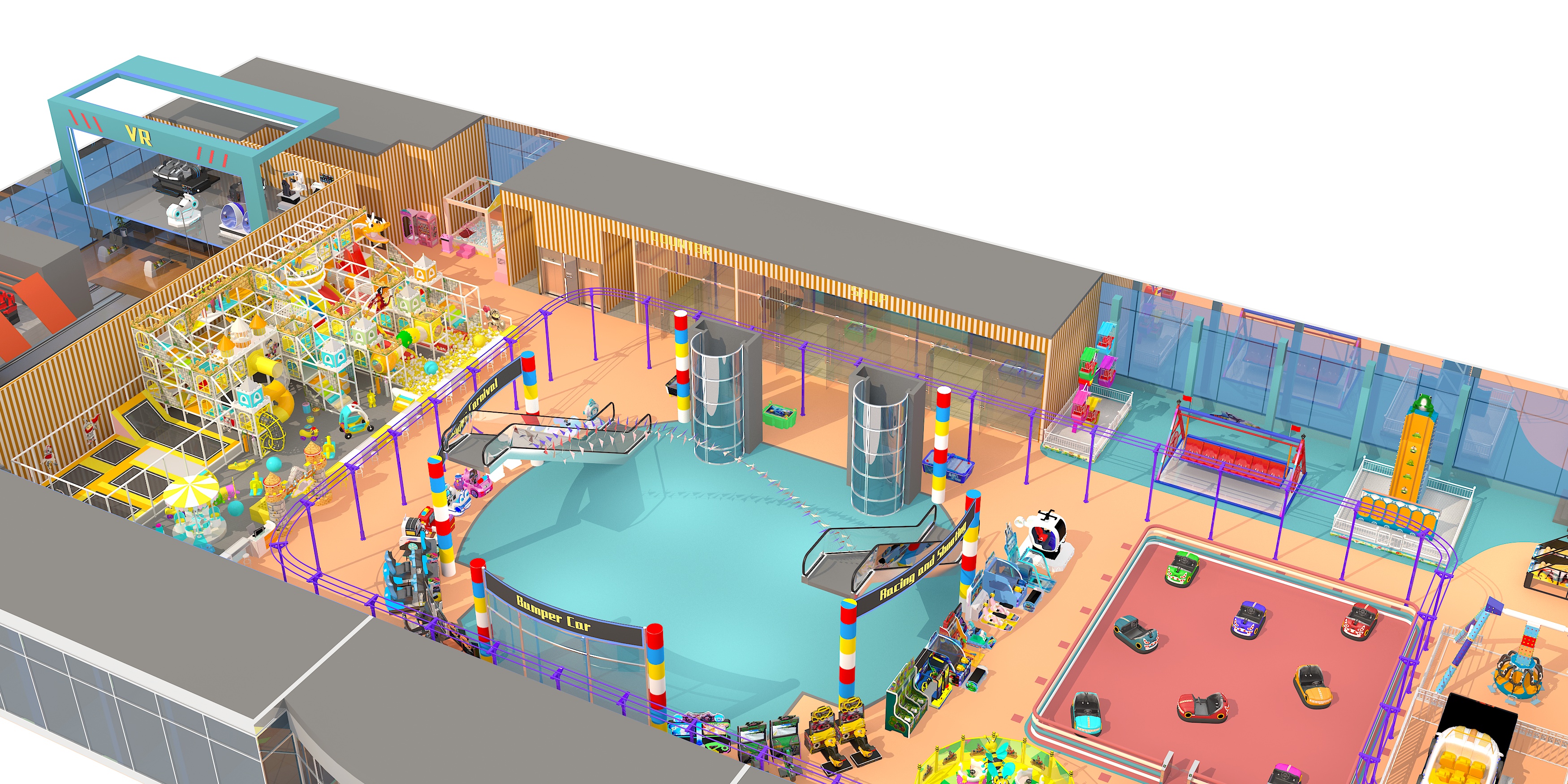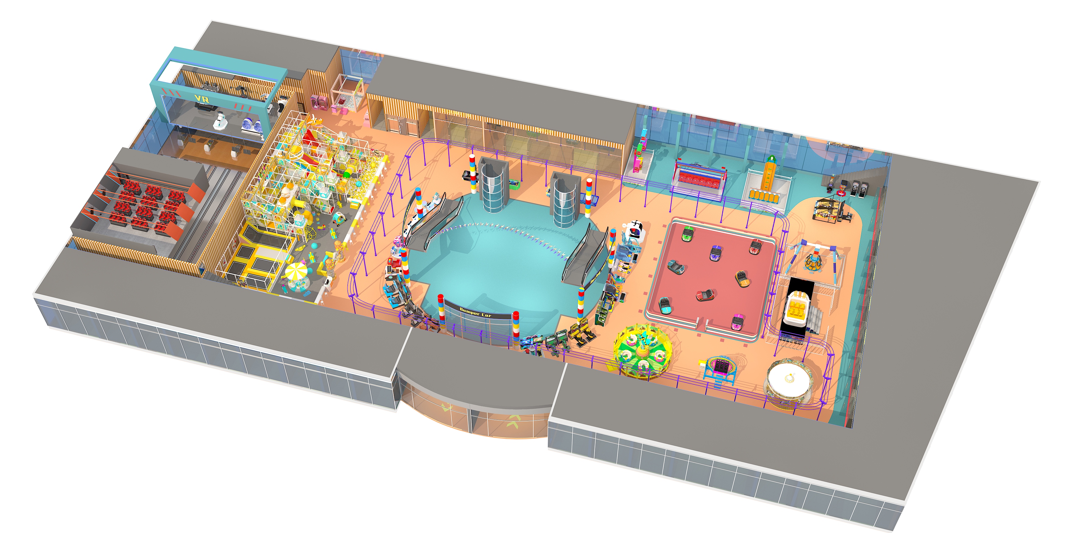 The most prominent feature of this design is that it occupies an entire floor of the shopping mall. Apart from soft play areas, it’s filled with games beloved by all age groups, especially adults – including arcade games, bumper cars, VR cinemas, and bowling. All machines are selected in the most luxurious styles. This design connects various gameplay experiences, allowing players to craze freely across the entire floor, and it yields astonishing profit margins.