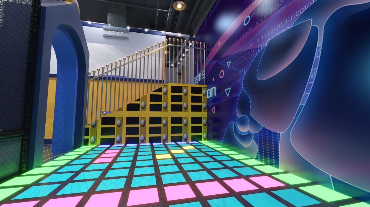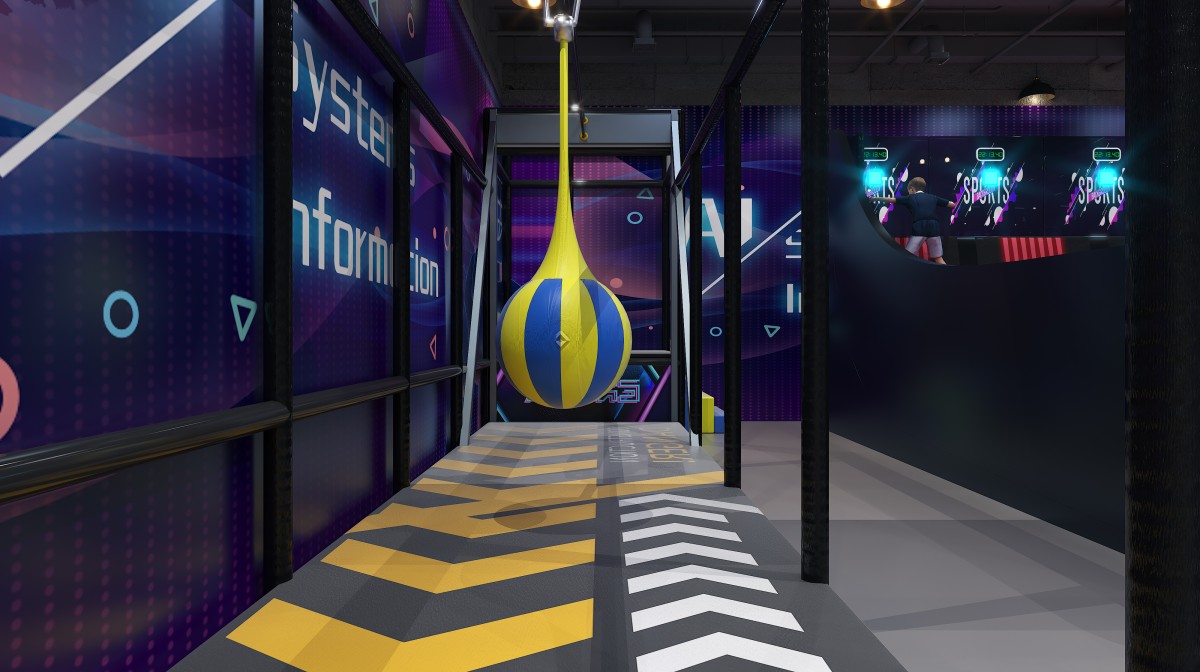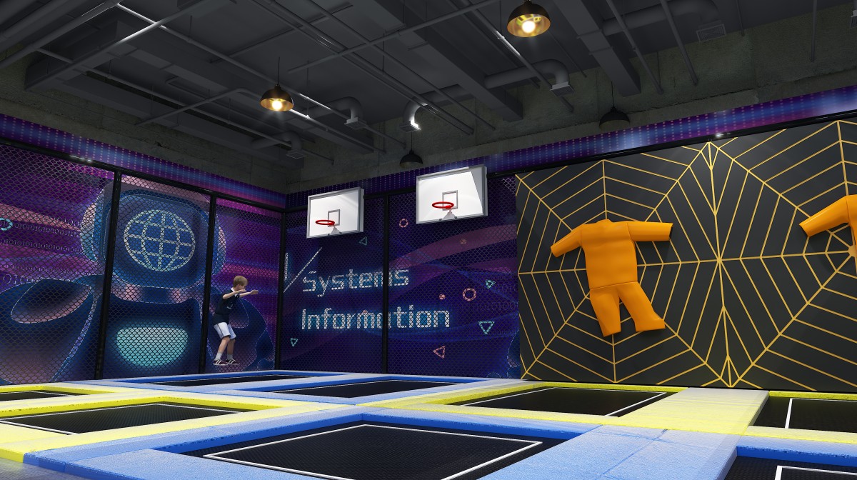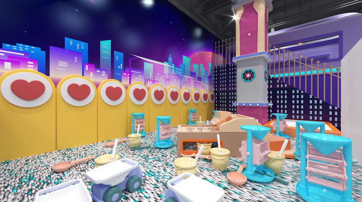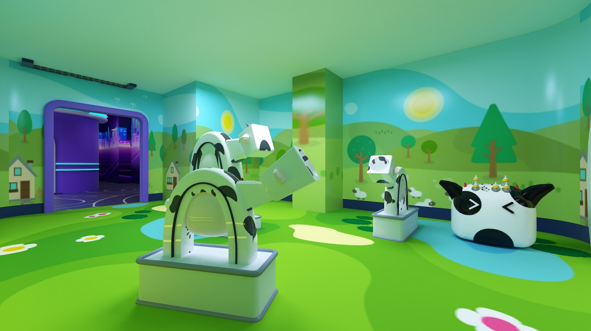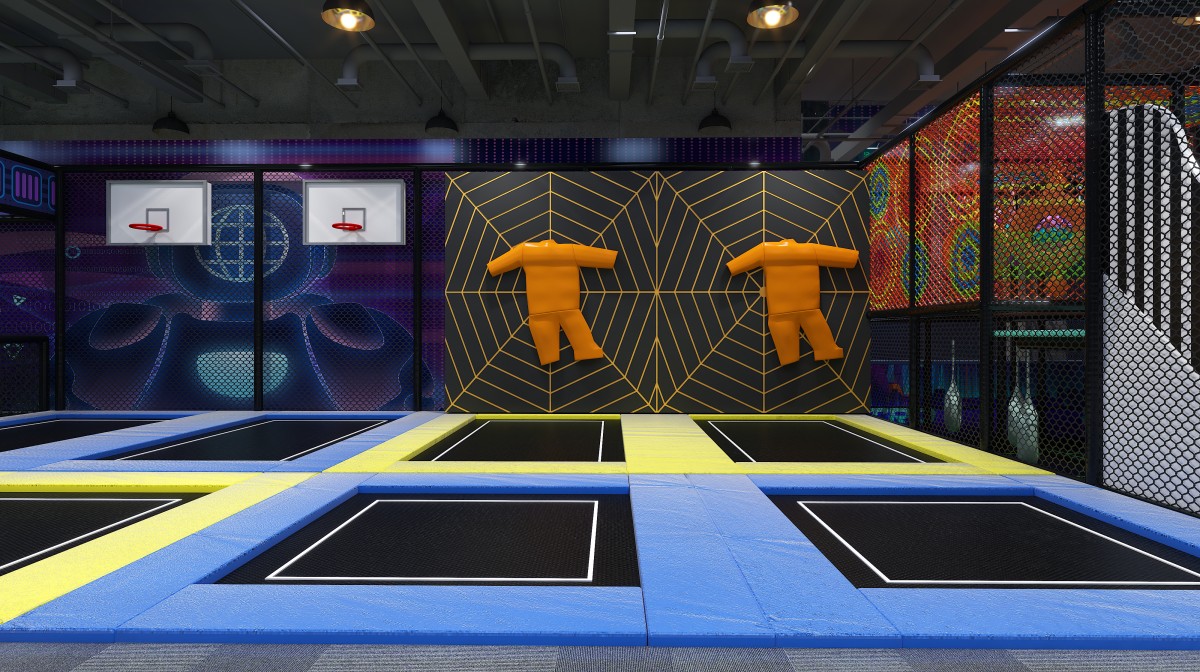 It's a cutting-edge indoor playground built around a three-level “Reactor Core” tower draped in glowing LED rings and neon arrows. From its interactive projection screen—where kids can race virtual cars and trigger dynamic effects by touch—to twin spiral and maze slides that plunge into a multicolored ball pit and foam-column field, every element blends high-tech thrills with soft-fall fun. A central illuminated runway links bouncing pillars, mini basketball trampolines, and climbing challenges (rock walls, net pods), while a separate toddler nook offers a safe kitchen role-play, police-car ride, and gentle sliders for ages 1–5.