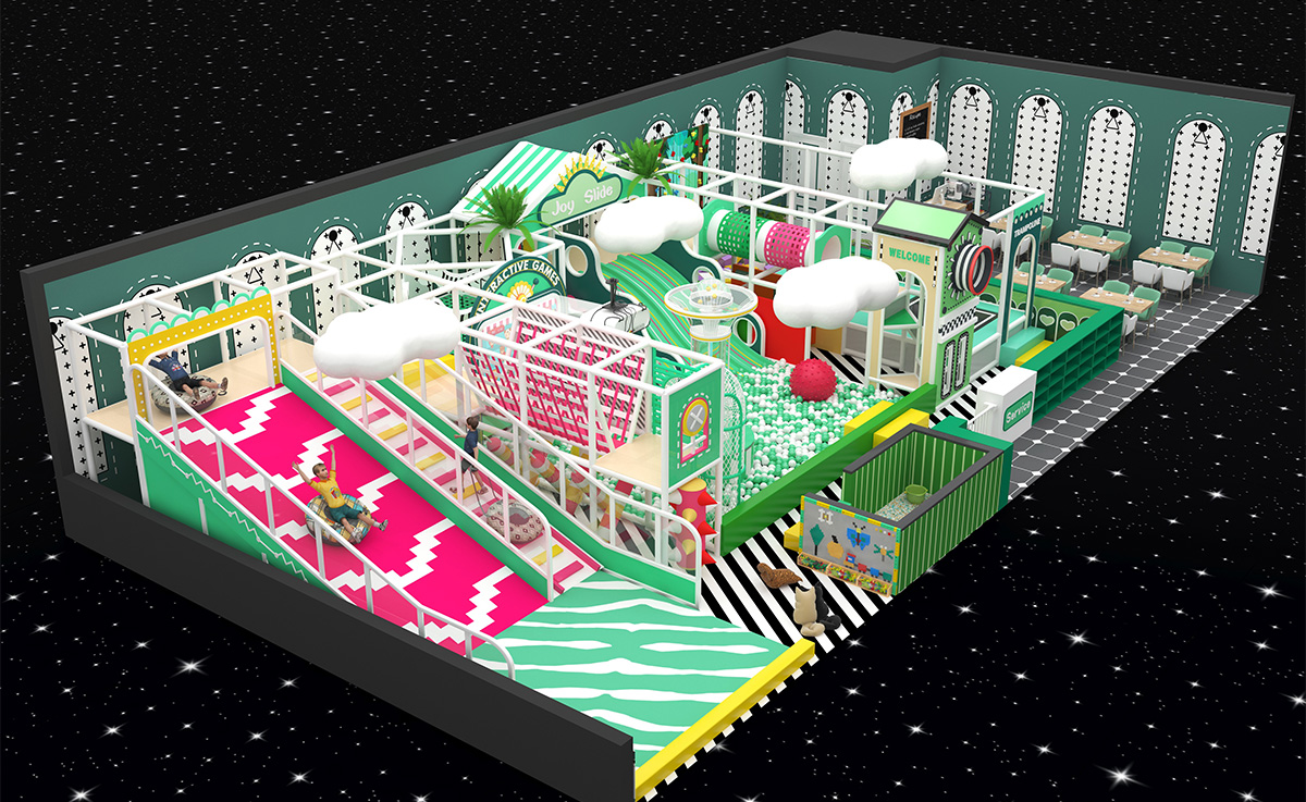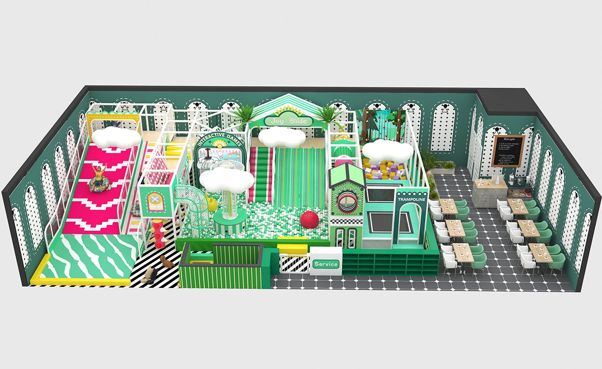 This design combines vibrant emerald-green and playful pink-and-yellow accents for a fresh, modern look. Thoughtfully arranged zones and clear traffic flow ensure both safety and seamless exploration. The integrated parent lounge and service area feature cozy seating for easy supervision and relaxation. From active play to creative interaction, this turnkey solution delivers a dynamic environment where children can grow, learn, and socialize with confidence.