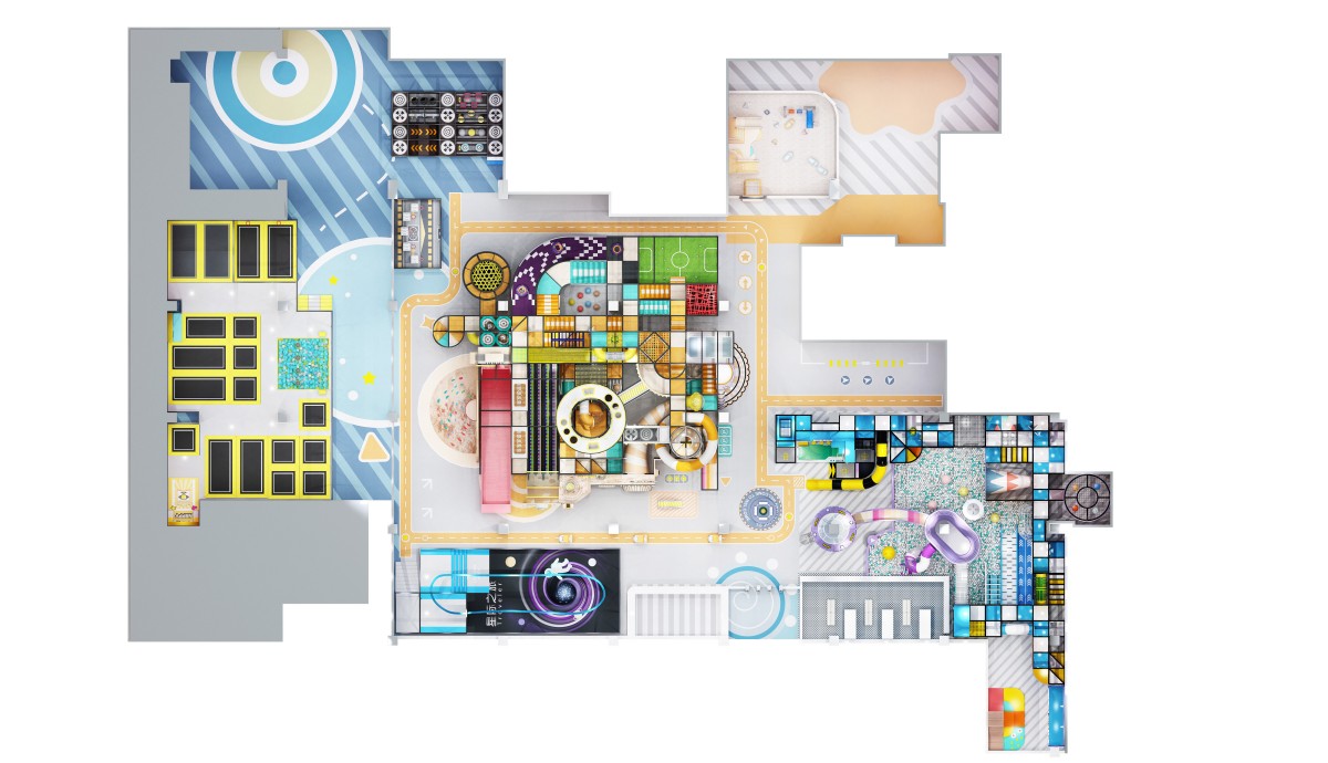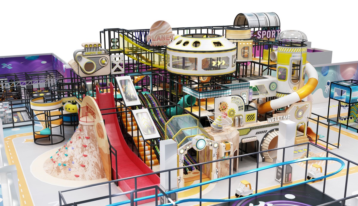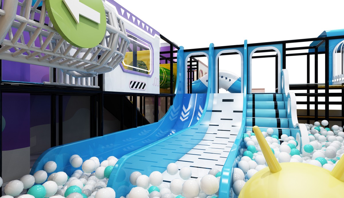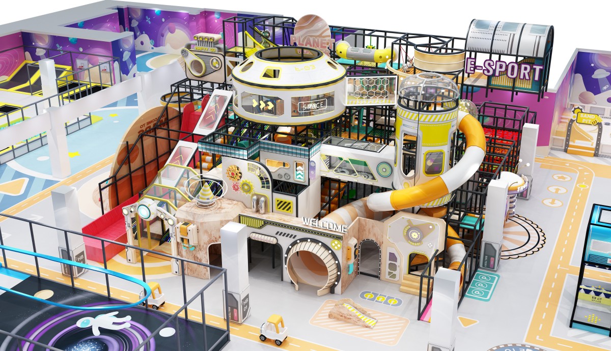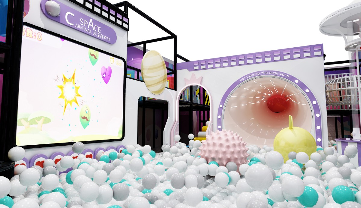 Inspired by a "space adventure" theme, our playground uses vibrant purples, whites, and yellows to create a dreamy atmosphere that’s both dynamic and fun. Kids can bound freely in the spacious trampoline area or test their courage and speed on multi-level slides and climbing slopes. The giant ball pit and spinning discs add joyful interaction, while the aerial rope maze hones balance and bravery. With a quiet building-block zone and exploratory sandpit, it also caters to each child’s curiosity and creativity.